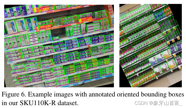 <3>、我们收集了一个经过仔细重新标记的数据集,即SKU110K-R,该数据集包含定向边界框的精确注释,以便于研究定向密集目标检测。