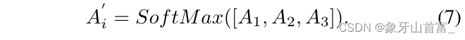 为了增强神经元的自适应感受野,我们采用了一种注意机制,以位置方式融合特征。Xi第一个进入注意块(由1×1卷积、BN、RELU依次组成),以获得注意力图Ai∈RH×W×1(i∈1,2,3)。然后,我们在通道方向上拼接Ai,然后进行SoftMax运算以获得归一化选择权重Ai ':