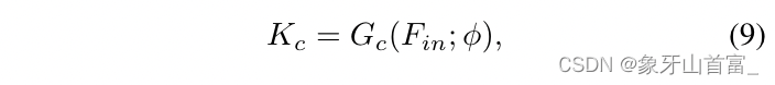 其中,Gc表示动态卷积生成器,ψ是Gc的参数集,Kc是学习到的示例核权重。然后,我们通过卷积运算得到特征细化因子F△: