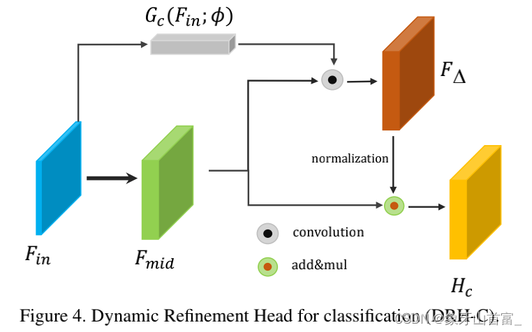 模型训练是一个从特殊到一般的过程,而推理是从一般到特殊的过程。然而,几乎所有的方法都遵循静态范式,不能基于样本进行灵活的推理。动态过滤器是一种简单而有效的方法,可以使模型在不同的样本中进行更改。现有的方法[4,38]借助于通过动态过滤器重新组装特征,并获得令人满意的结果。然而,检测器有两个不同的任务,即分类和回归。图1显示了一些示例。对于分类任务,关键是细化特征嵌入,以提高识别率。然而,对于回归问题,直接重新定义预测值是可取的。我们针对上述两个方面提出了两种版本的动态细化头(DRH)。