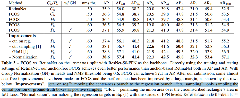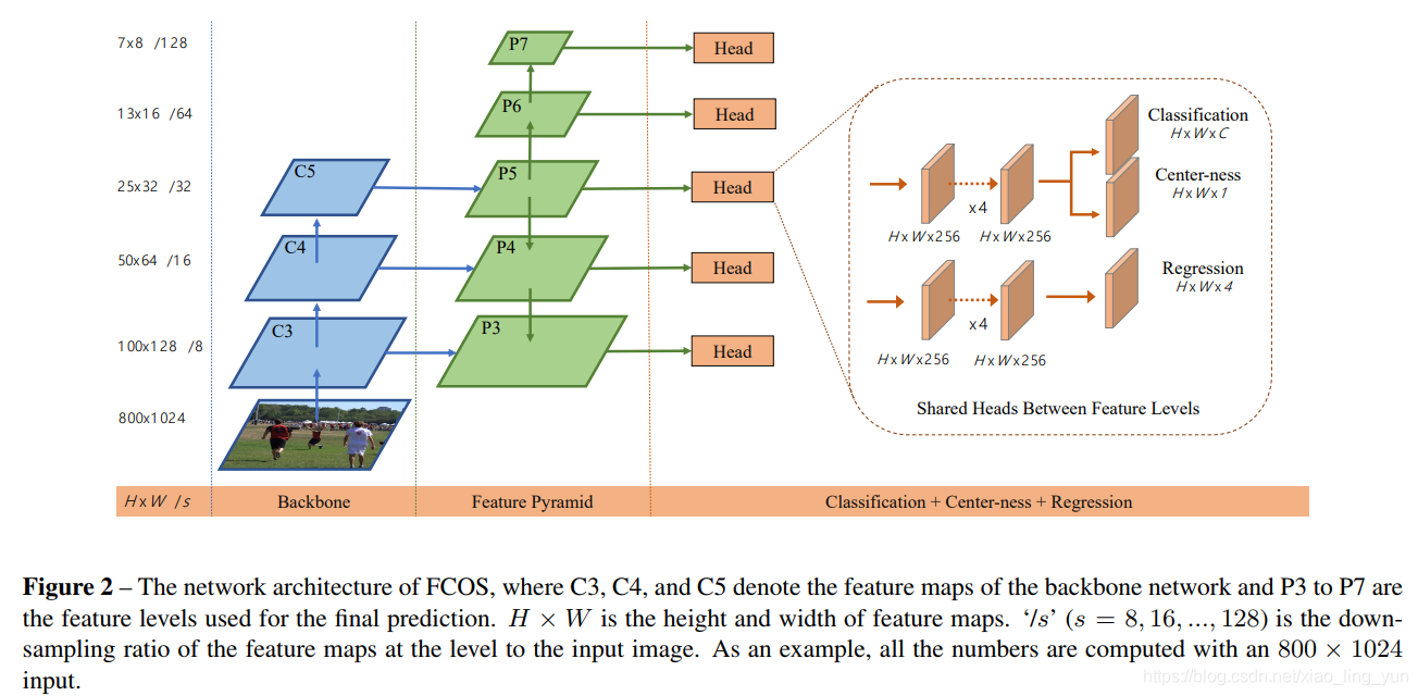写在博客的最最最前面,我不得不说,本来我是不想写FCOS的,因为确实网上很多博客都有在讲,而且论文整体据说比较好理解,但是我发现我看了很多篇博客都一模一样,而且吧,他们还不讲细节,就比如为啥引入FPN之后模糊样本就少了?为什么引入 (详细见章节7)?还有就是他们一直在说FCOS共享了head,论文原文证据(原文也只说了共享head)和代码都没有。。。然后你看FCOS论文的模型图你可能还想象不到P3~P7用的是同一个head,只不过