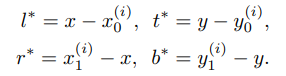 (1)FCOS方法借鉴了FCN的思想,对 feature map 上每个特征点做回归操作,预测四个值 , 分别代表特征点到Ground Truth Bounding box上、下、左、右边界的距离。
