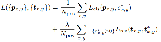 (4)损失函数由三个部分构成:分类损失focal loss;回归损失iou loss;center-ness损失 BCE。