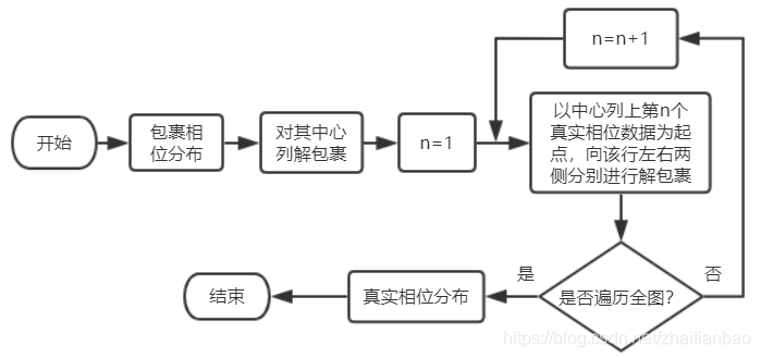 第一部分讲解了一维相位解包裹的原理,据此可推导出一般意义上的二维解包裹逻辑,先一维展开再逐行或者逐列进一步展开即可实现二维解包裹,这就是行列法的原理,它是二维解包裹算法中最简单的一种,其具体实现过程为: