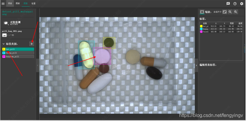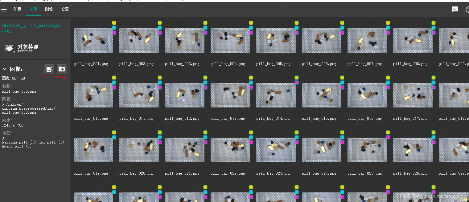 2、无方向的目标检测标注;---------用于目标检测,例如官方深度学习(目标检测)的药丸检测案例