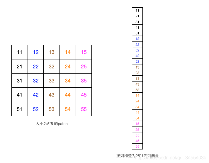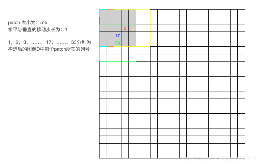 1. 指定一滑动窗口,从左上到右下依次得到每个Patch,然后将每个patch向量化为列向量,构成新的矩阵,由此得到patch-image;