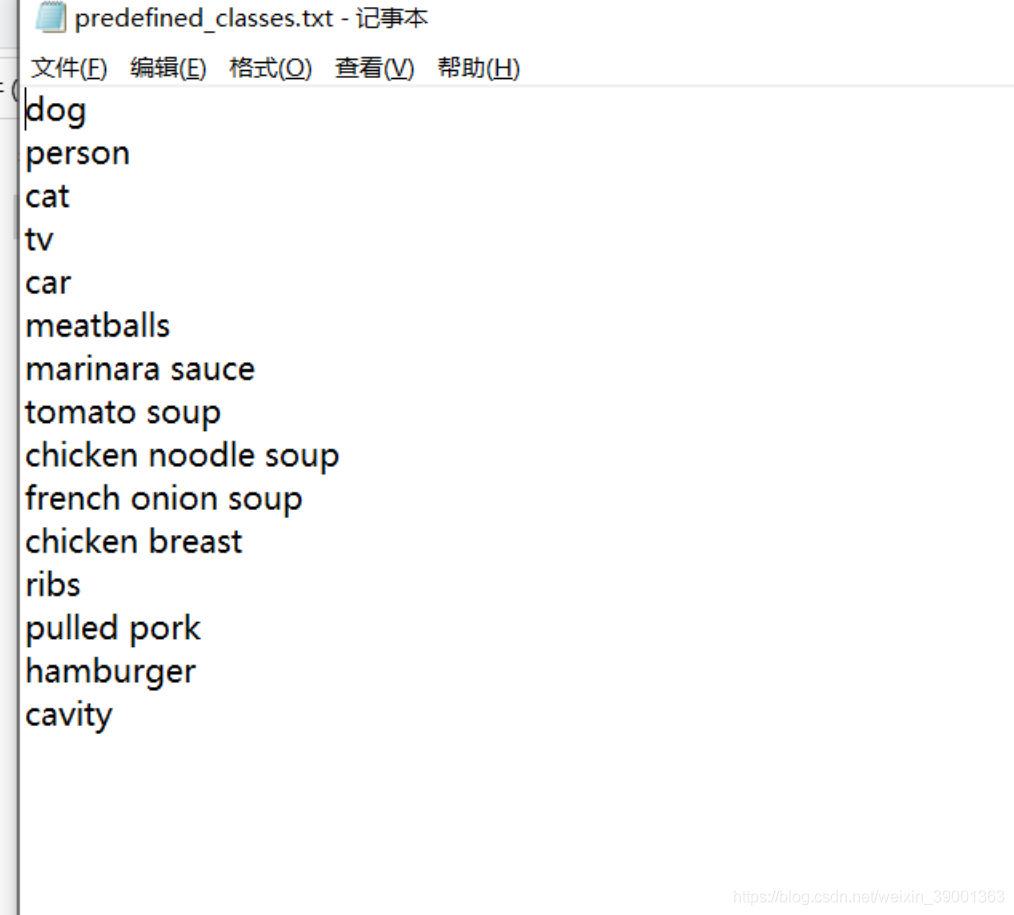 - 预设分类 predefined_classes.txt (data/predefined_classes.txt)修改成自己需要标注的标签,每行一类
