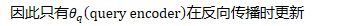 因此只有𝜃𝑞query encoder在反向传播时更新