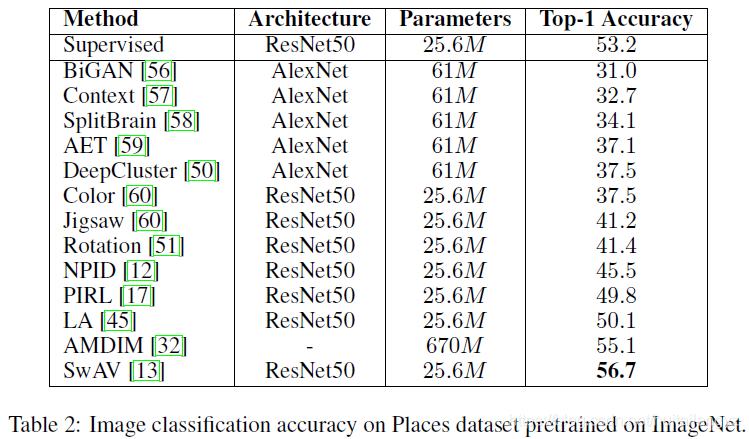 图像分类:在ImageNet上预训练,然后使用线性分类器在Places上finetune