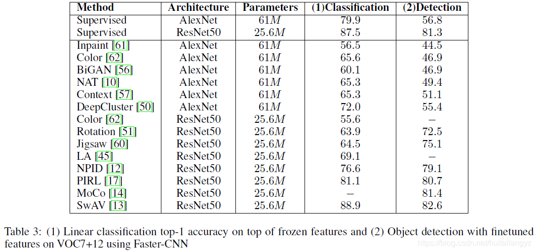 线性分类:在VOC7上进行预训练,然后将特征再使用一个线性分类器进行finetune