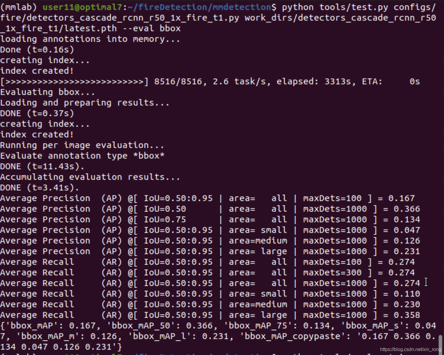 (注意:文中--eval bbox适用于目标检测模型,其他模型--eval 需要换参数)