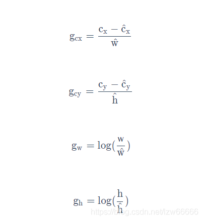 这里我们使用的是与SSD完全一致的编码方法,具体公示表达如下: