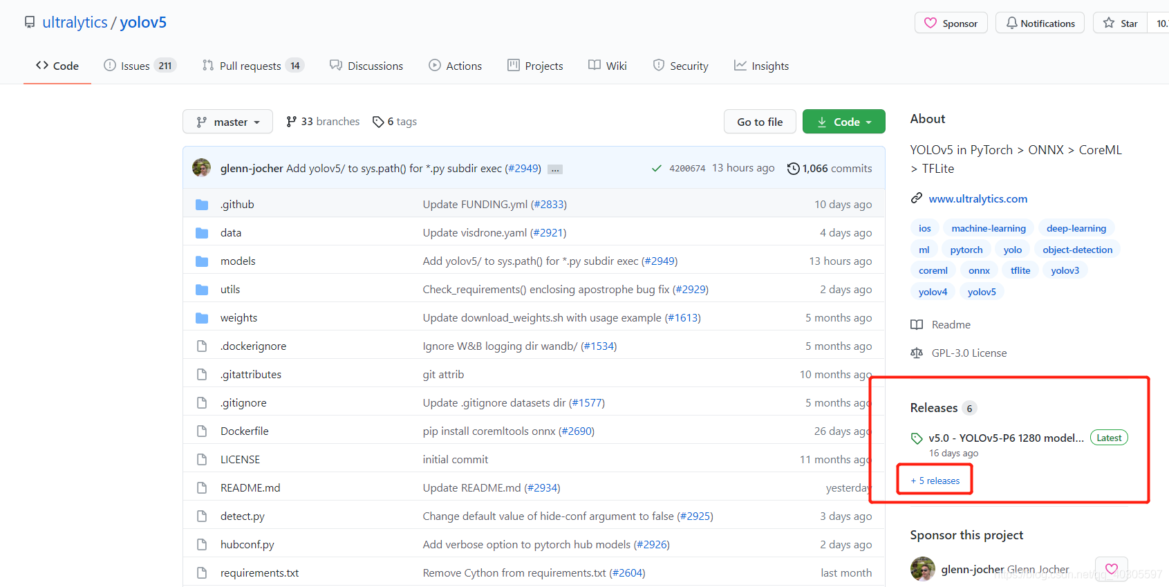 1.1 Github下载地址:https://github.com/ultralytics/yolov5