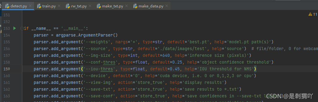 detect.py-main---source-default设置为'0',表示使用电脑摄像头;