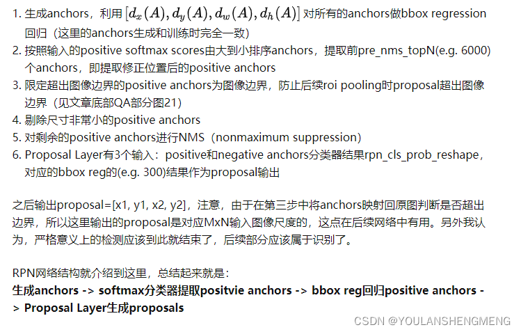 - Region Proposal Networks。RPN网络用于生成region proposals。该层通过softmax判断anchors属于positive或者negative,再利用bounding box regression修正anchors获得精确的proposals。
