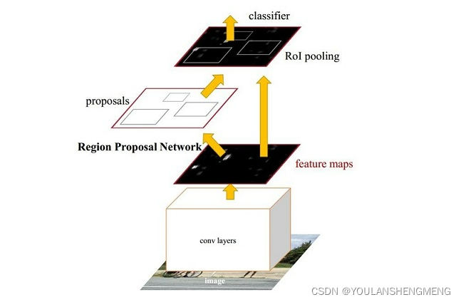 经典的检测方法生成检测框都非常耗时,如OpenCV adaboost使用滑动窗口+图像金字塔生成检测框;或如R-CNN使用SS(Selective Search)方法生成检测框。而Faster RCNN则抛弃了传统的滑动窗口和SS方法,直接使用RPN生成检测框,这也是Faster R-CNN的巨大优势,能极大提升检测框的生成速度。