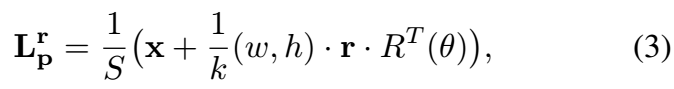 这个偏移量O用来计算基于anchor的采样位置和规则的采样位置之间的偏差。用(x,w,h,θ)来表示当前的位置p的anchor框,对于每个规则的位置r,基于anchor的采样位置可以定义为: