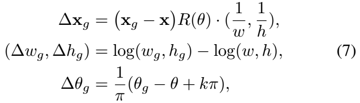 我们的回归目标如下,表示gt和anchor之间的差别,其中k是整数,确保差别在{-π/4, 3π/4}范围内。