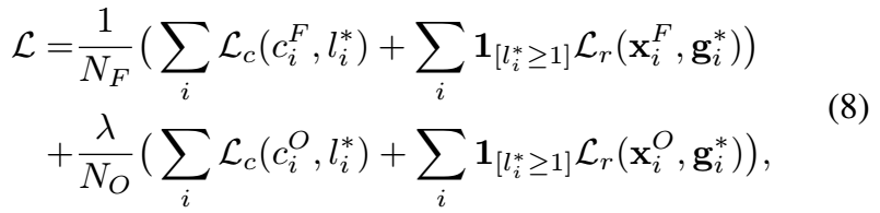 损失有2部分,FAM的损失和ODM的损失,定义如下,这里分类用focal loss,回归用smooth L1 loss: