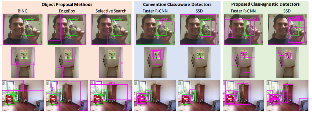 在很多问题中,目标的存在位置信息比类别信息更重要,于是该文作者提出一种新型 class-agnostic(可不知类别的) 目标检测问题表述,作为新的研究方向。制订训练和评估协议,以确定基准和推进研究;设计一个新的对抗式学习框架,用于类诊断检测,强制模型从用于预测的特征中排除 class-specific 信息。实验结果表明,对抗式学习提高了 class-agnostic 识别的检测效率。