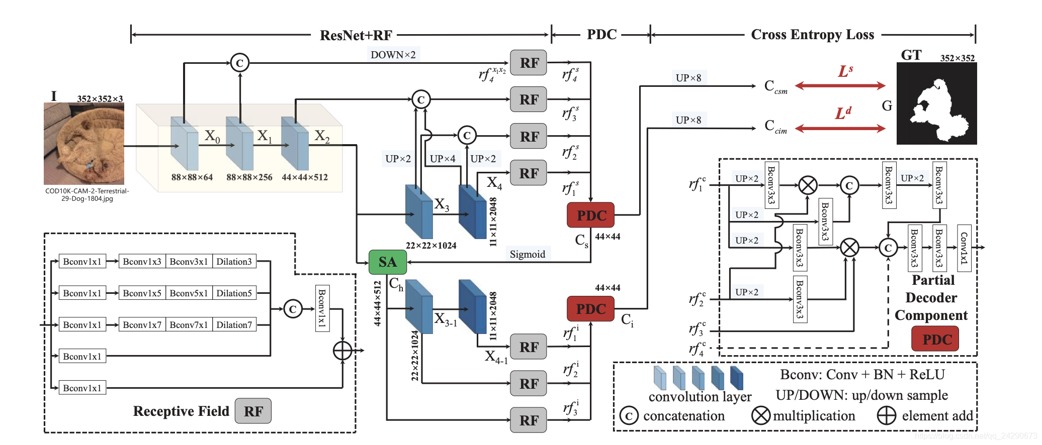 框架主要包括两个模块:搜索模块 (SearchModule, SM) 和识别模块 (Identification Module, IM)。前者负责搜索被伪装的物体,而后者则用于精确检测物体。