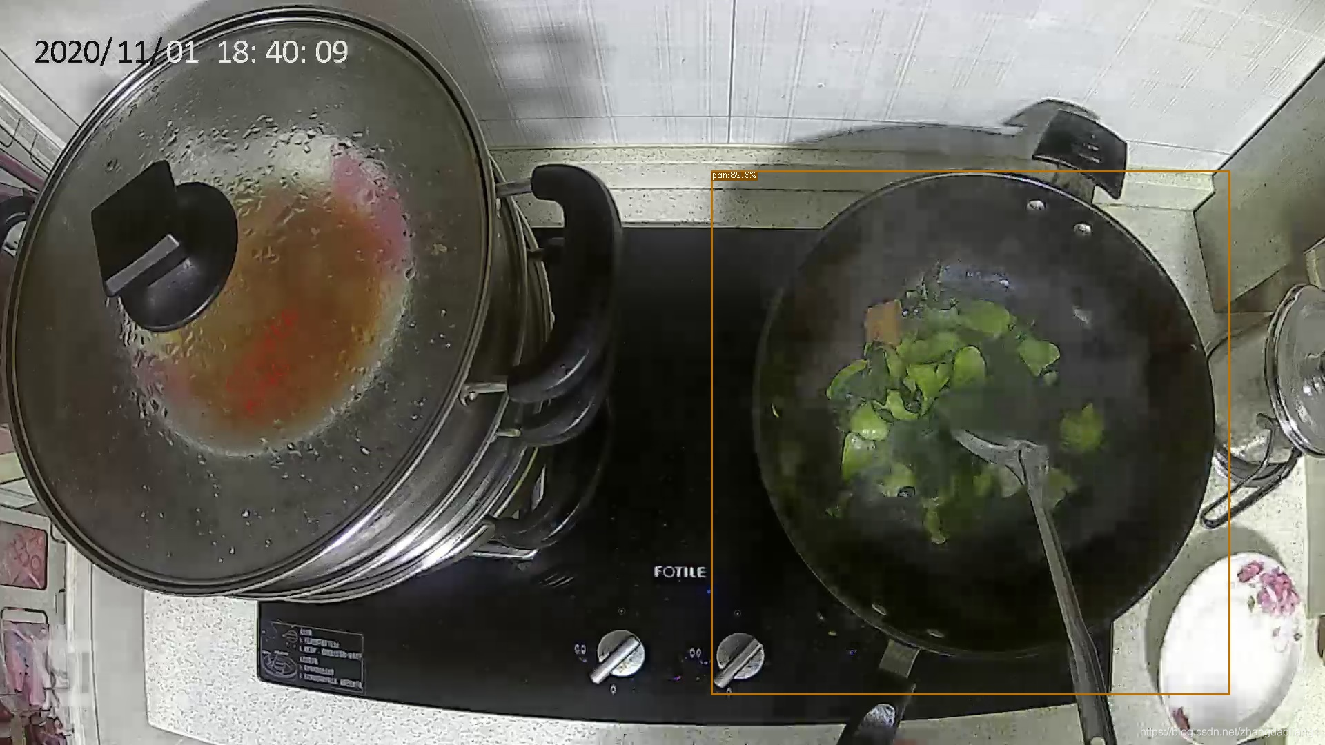 具体检测图像如下,因为我就一个标签pan,图上预测的概率是89.4%