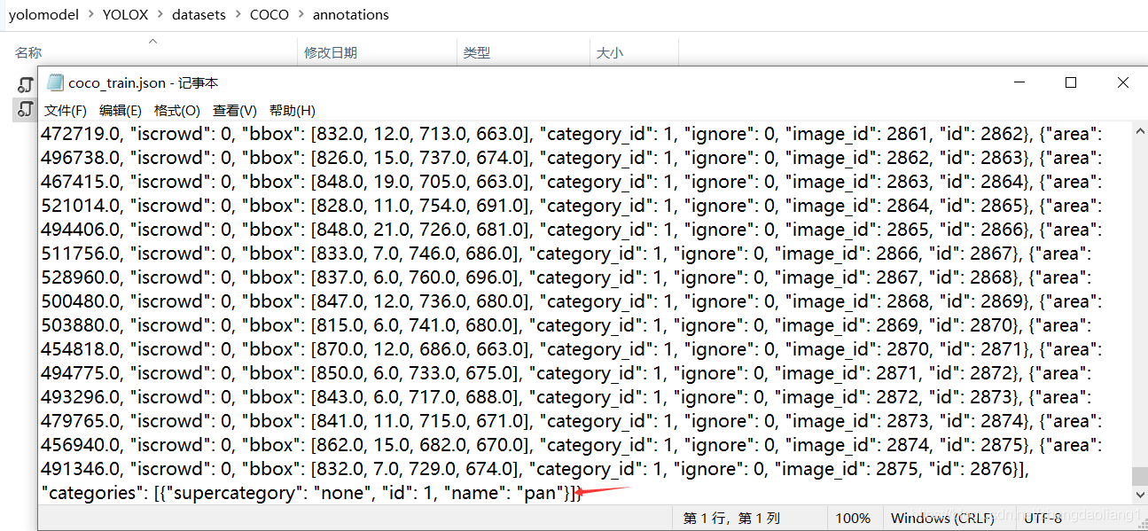 4、接下来可以训练自己的数据集了,yolox里面支持voc和coco数据集,这边我采用的是cooc数据集格式,因为之前跑其他模型得时候已经制作过coco数据集,这里就不介绍如何制作了,网上教程也很多,大家可以自行参考。