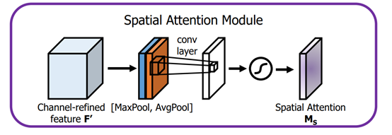 空间注意力:将Channel attention模块输出的特征图作为本模块的输入特征图。首先做一个基于channel的global max pooling 和global average pooling,然后将这2个结果基于channel 做concat操作。然后经过一个卷积操作,降维为1个channel。再经过sigmoid生成spatial attention feature。最后将该feature和该模块的输入feature做乘法,得到最终生成的特征。
